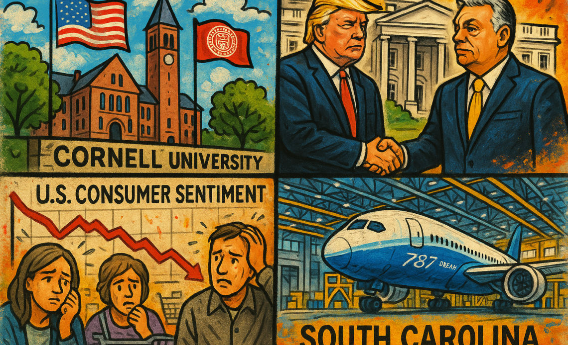 US digest: Cornell restores federal research funds, consumer sentiment falls, Boeing expands 787 plant